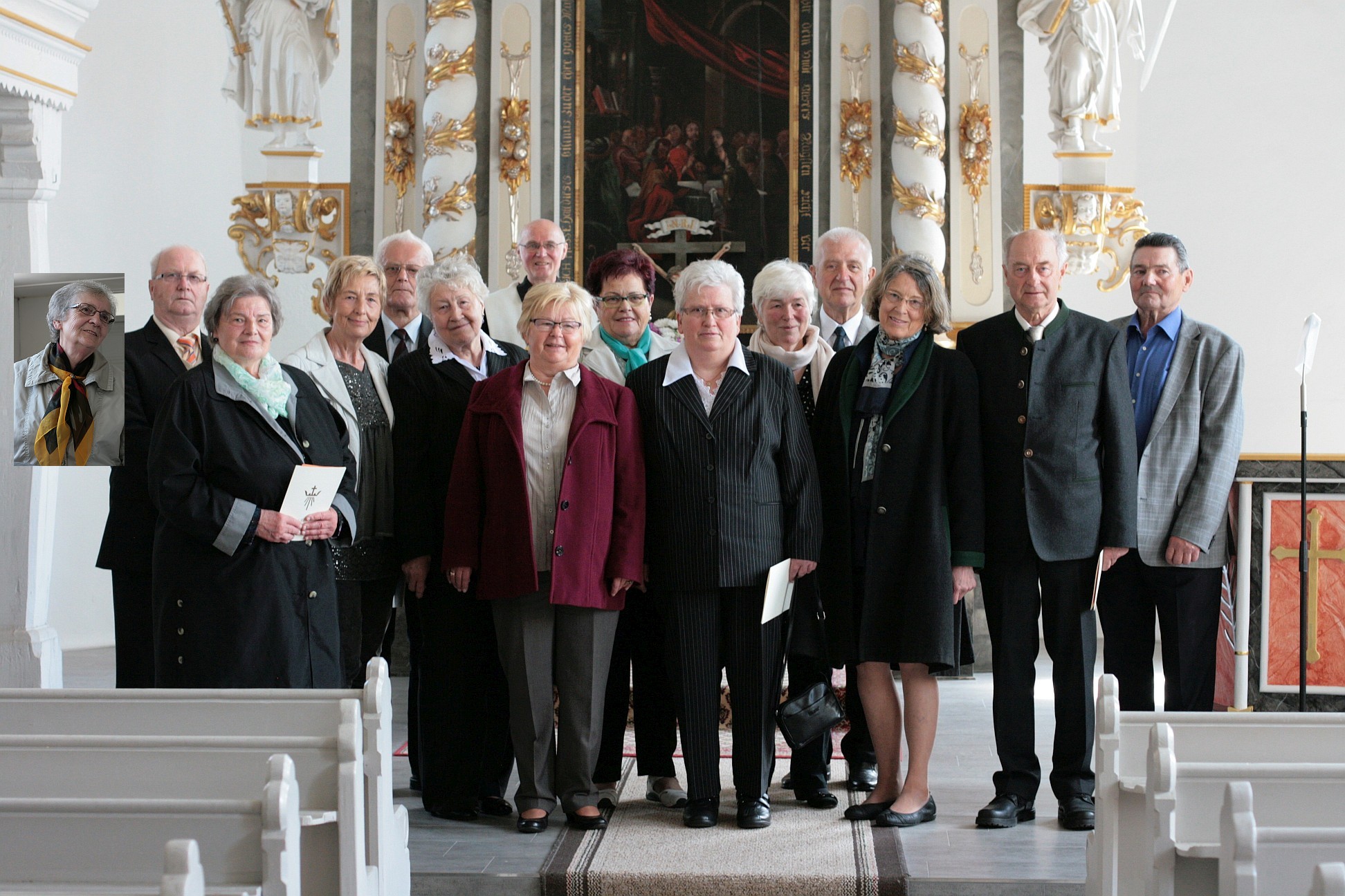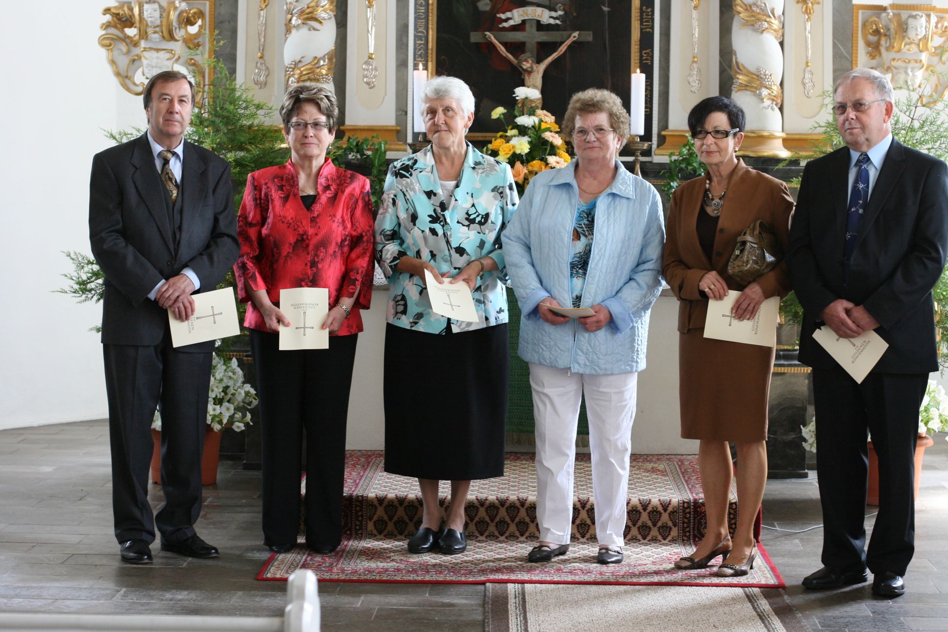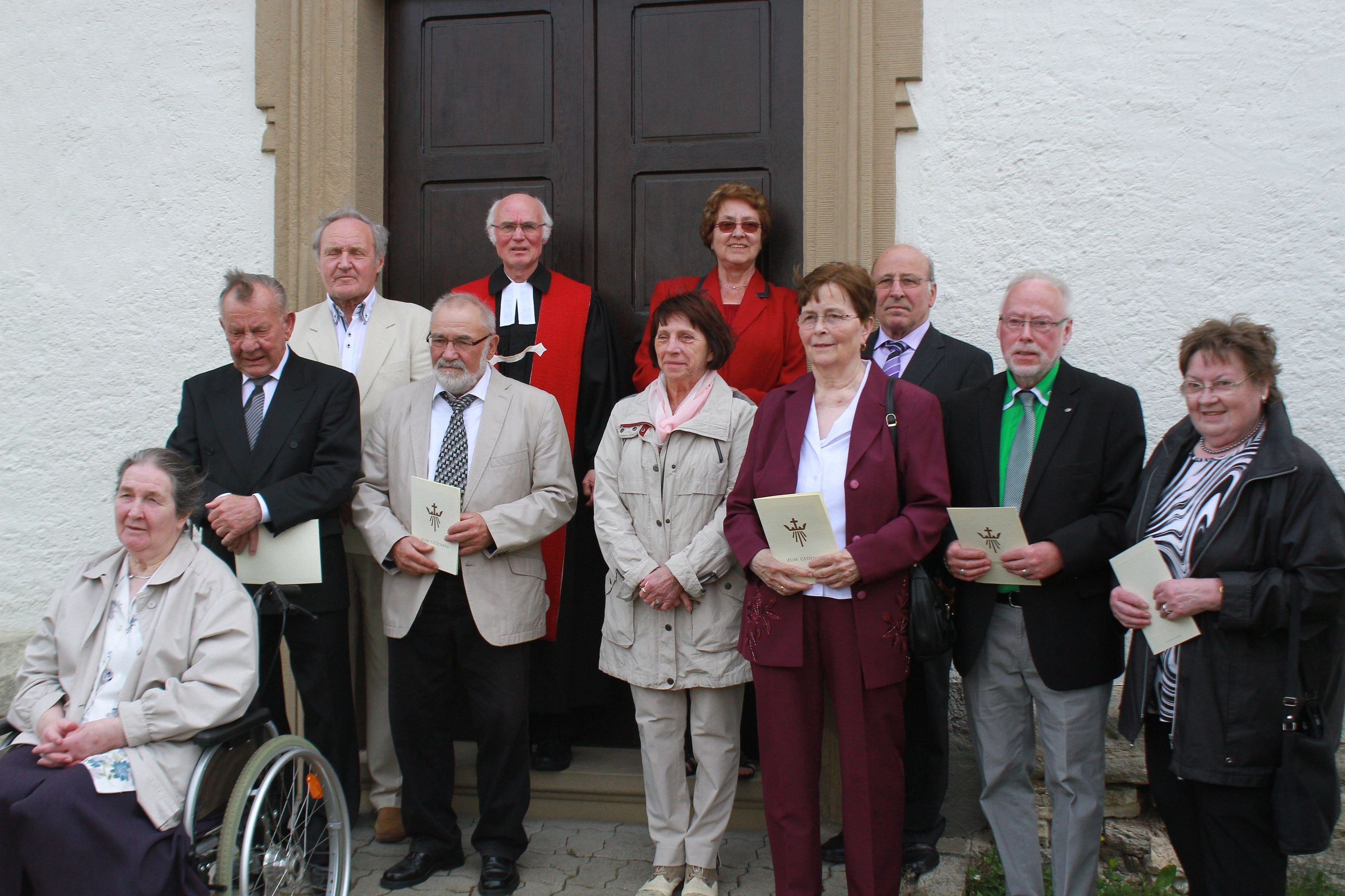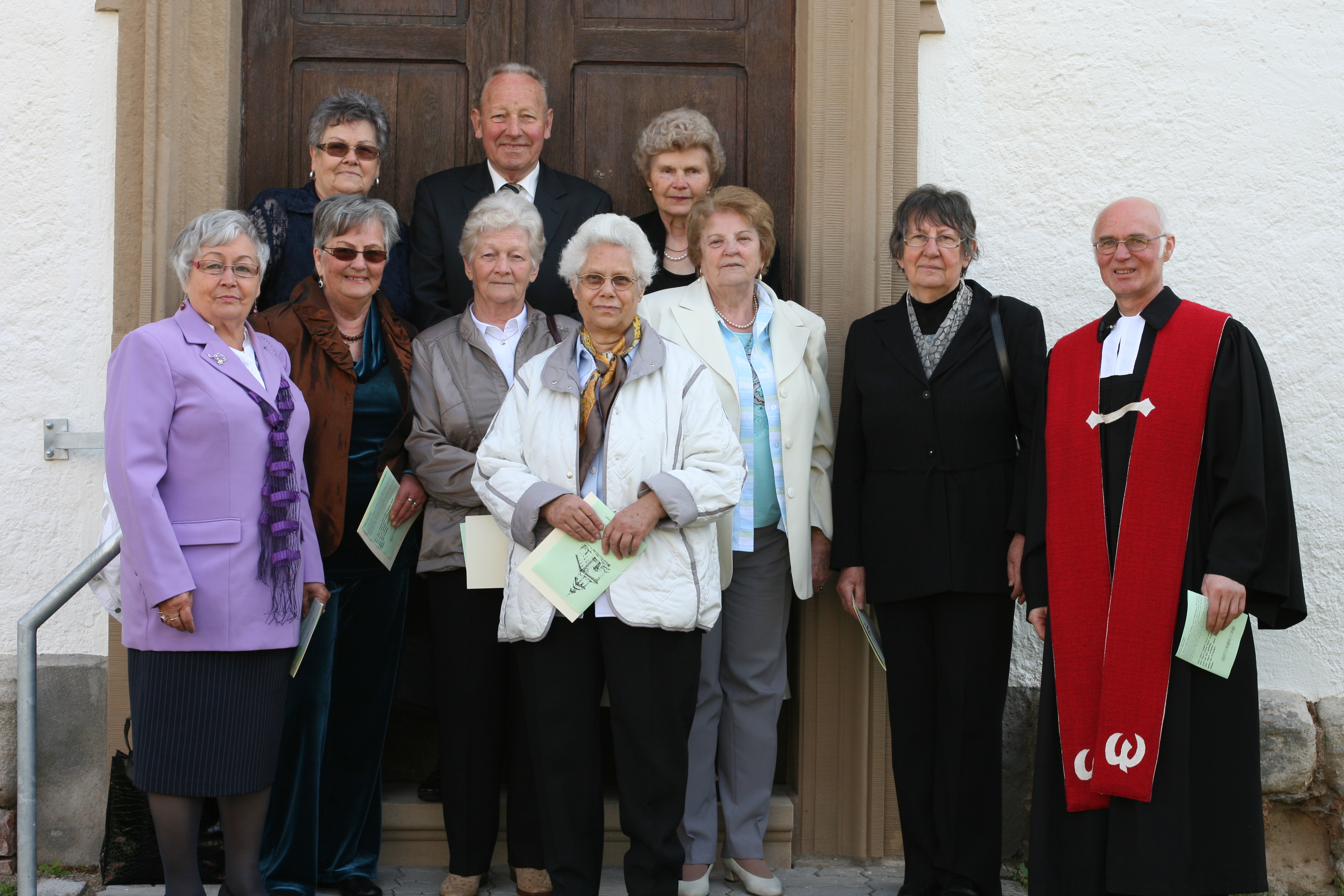70 Jahre - Gnadenkonfirmation (G), 65 Jahre = Eiserne Konfirmation (E), 60 Jahre = Diamantene Konfirmation (D) und 50 Jahre = Goldene Konfirmation (Go)