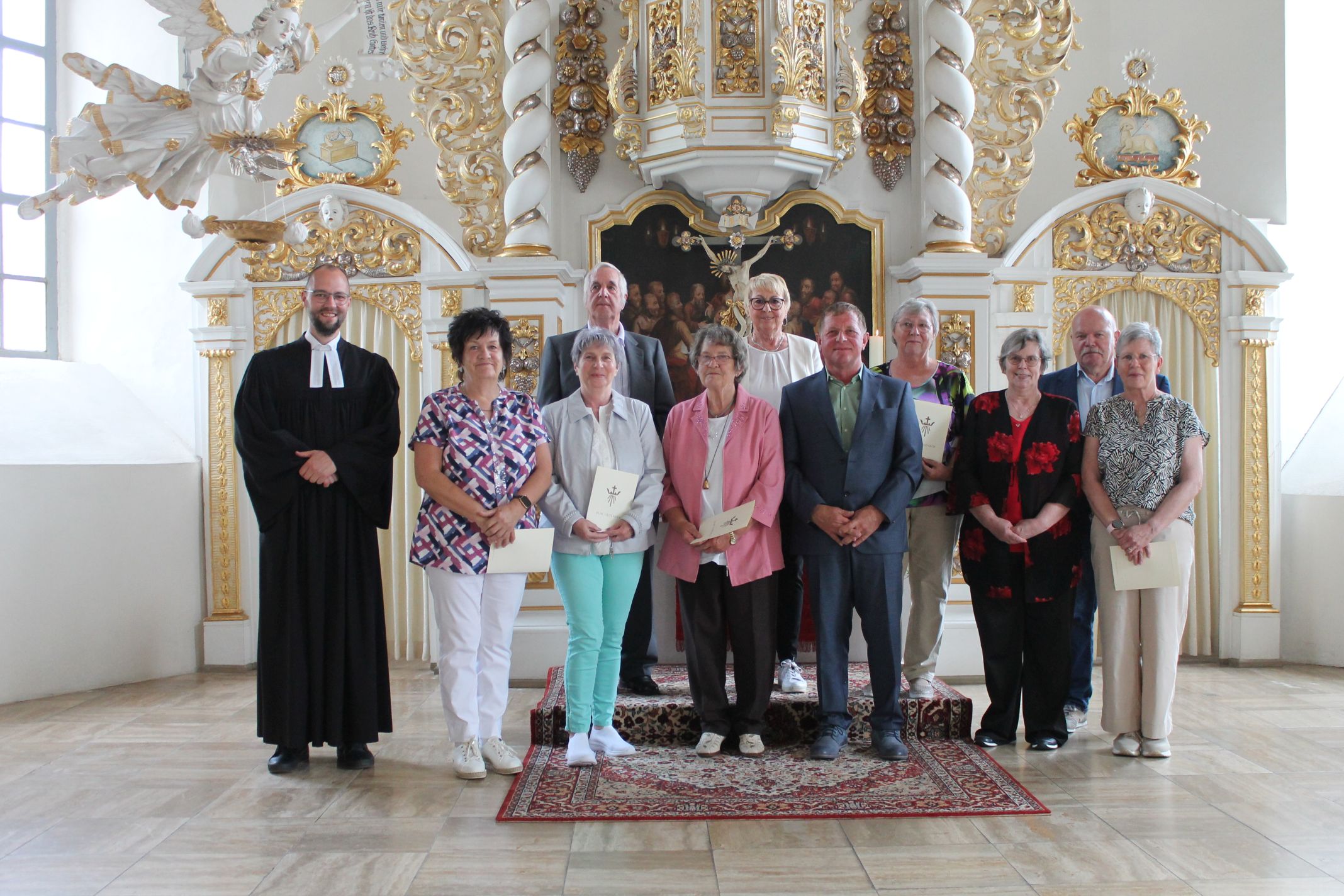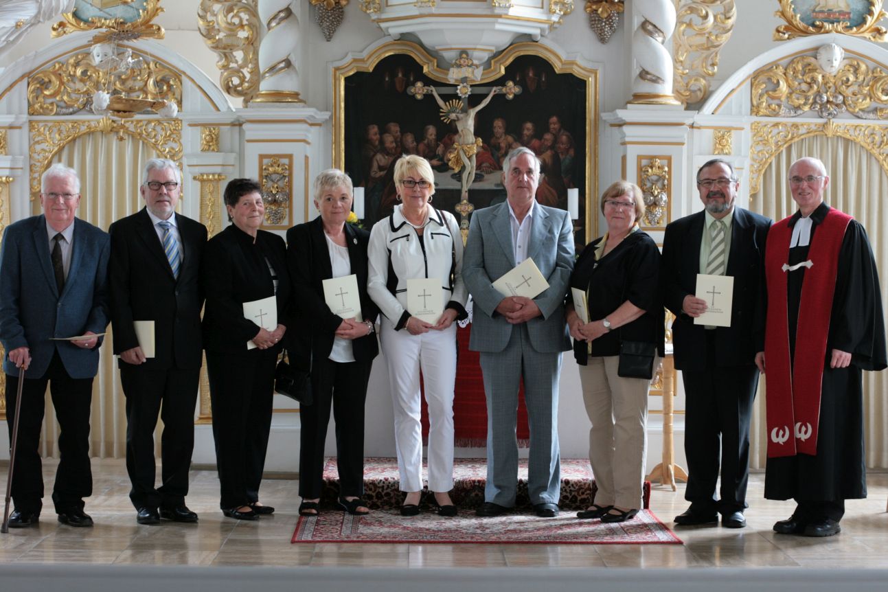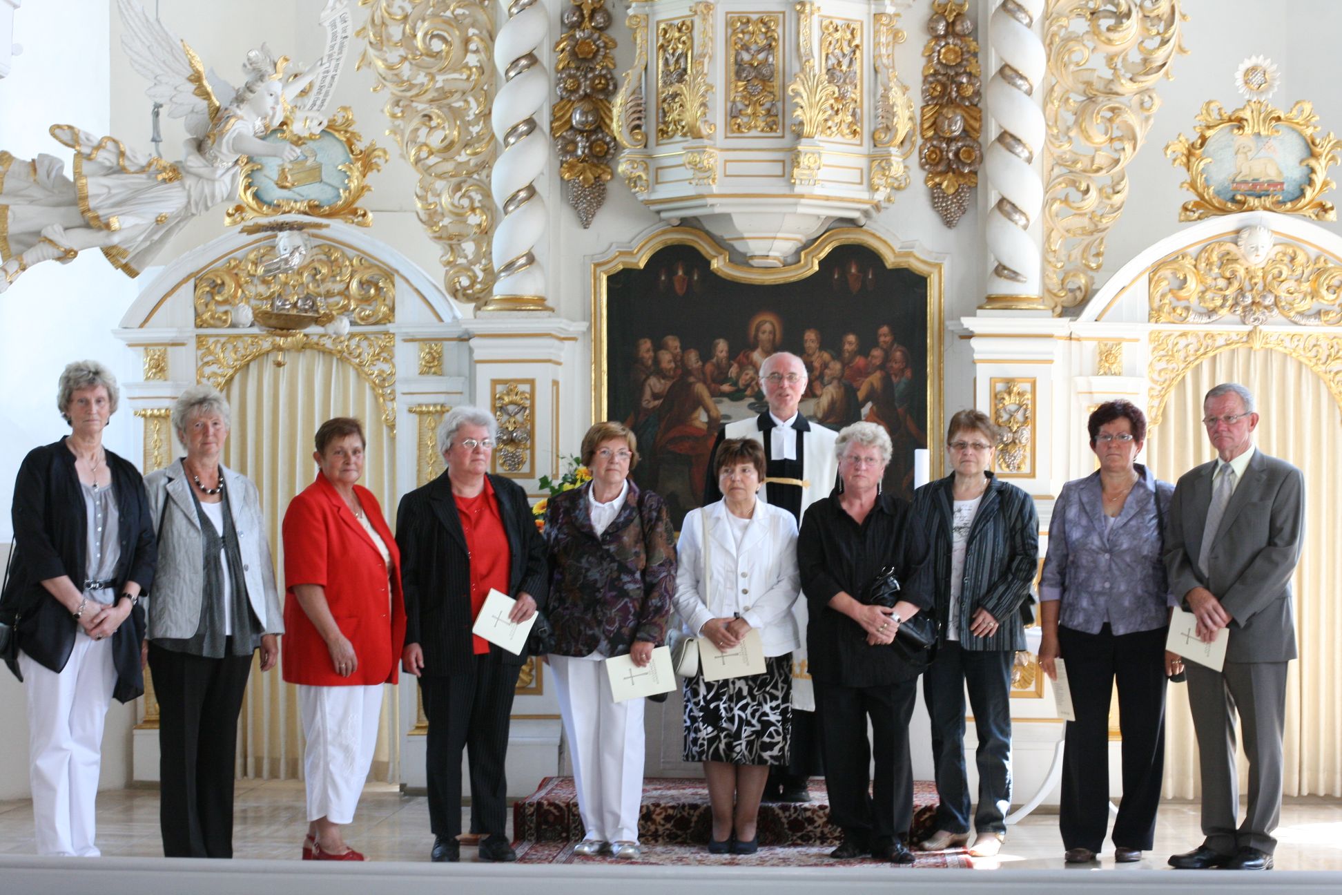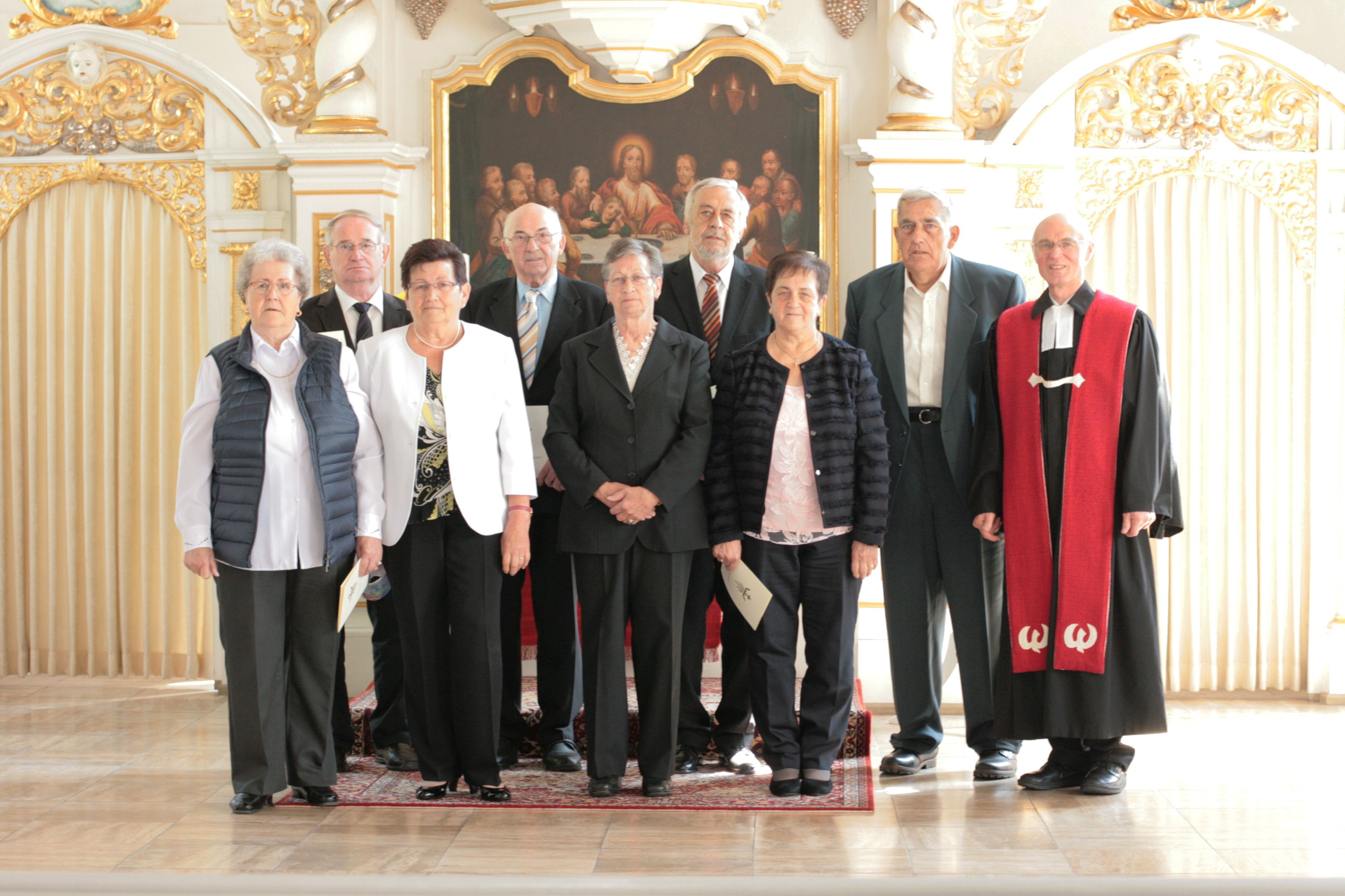 70 Jahre - Gnadenkonfirmation (G), 65 Jahre = Eiserne Konfirmation (E), 60 Jahre = Diamantene Konfirmation (D) und 50 Jahre = Goldene Konfirmation (Go)