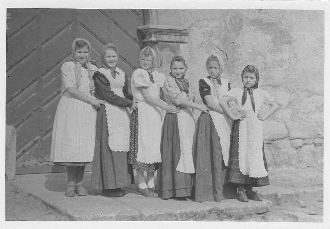 vorn von links: Inge Grimm, gb. Bauer, Ursula Haase, gb. Müller, Annie Herzberg gb. Dransfeld, Helene Hesse, gb. Schafberg, Irene Friedrich, Thekla Gieseler, gb. Artmann,